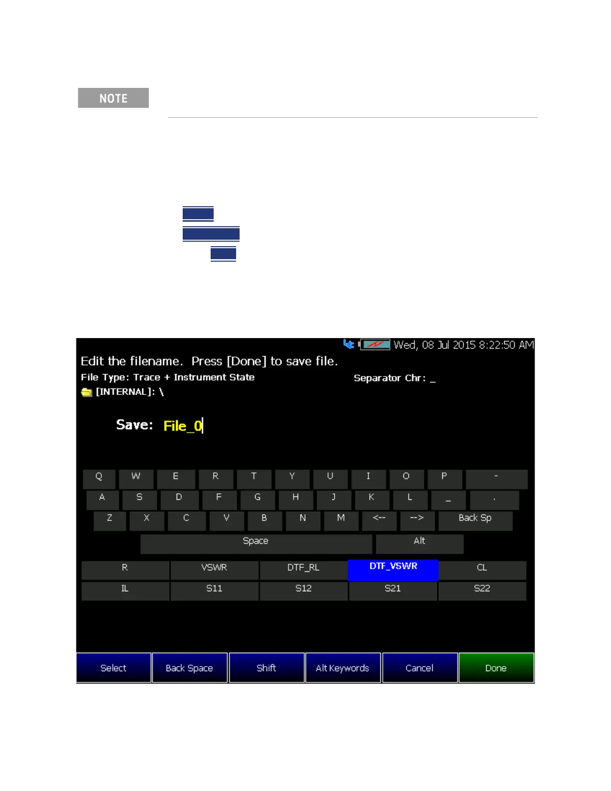 The FieldFox labeler is used to edit or change the current filename. It is also