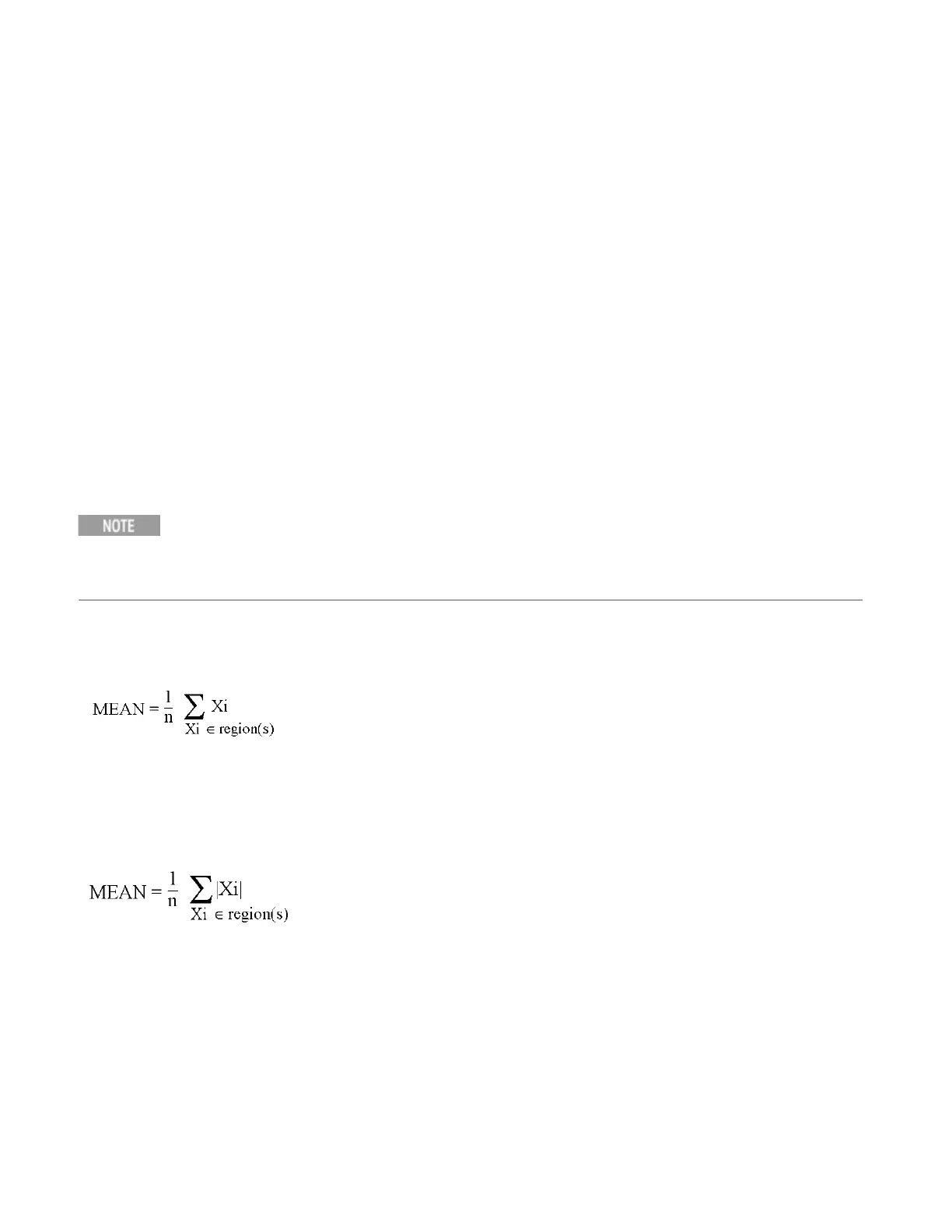 where Xi is a data point value, and n is the number of data points in the specified region(s).