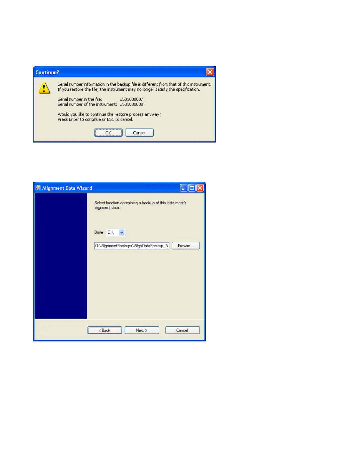 If the serial number information in the backup file beingrestored is different from that of the instrument, the