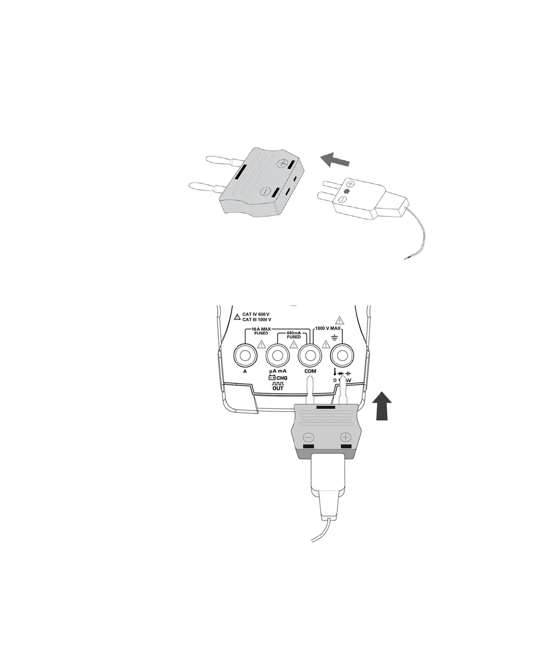 Figure 2-14 Connexion de la sonde avec l'adaptateur sur le multimètre