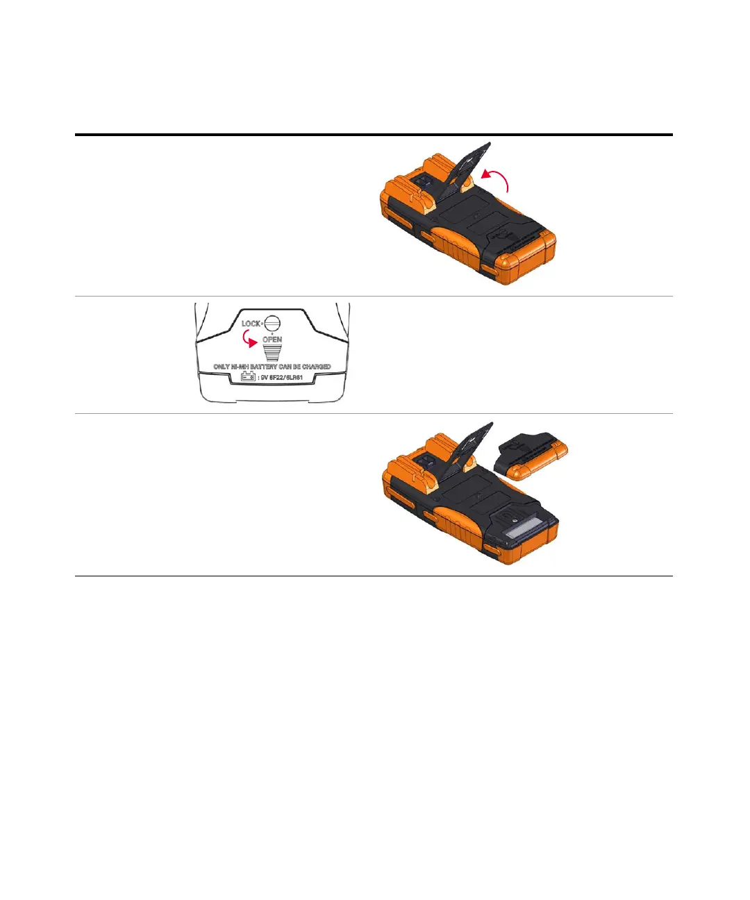 cubierta de la batería de la posición LOCK a