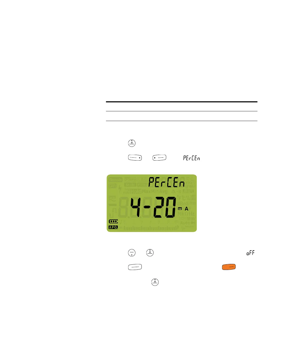 PErCEn 4-20 mA, 0-20 mA, or Off 4-20 mA
