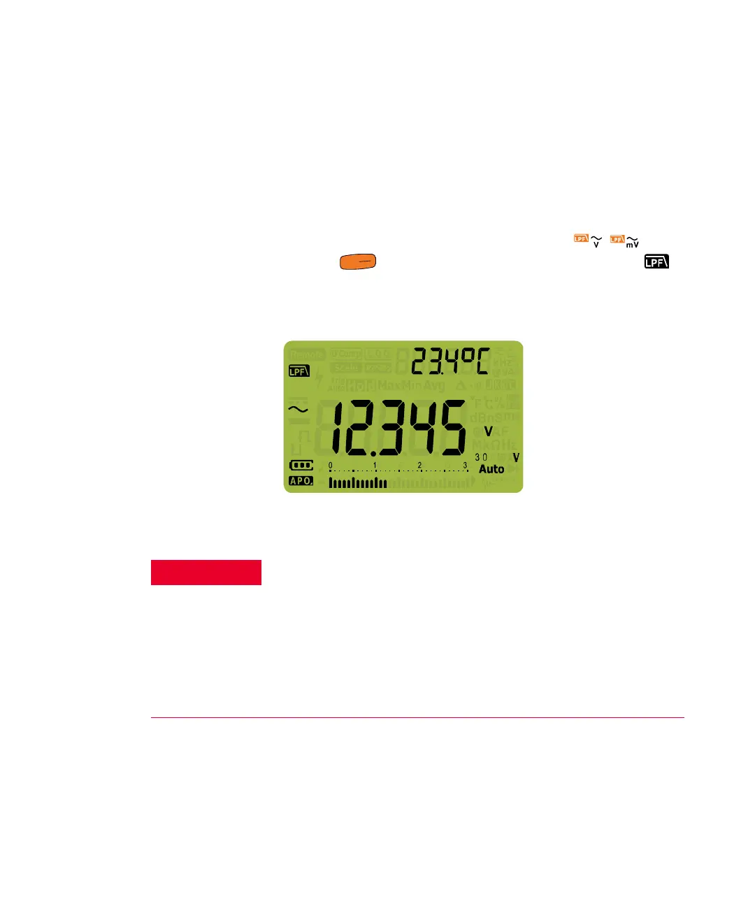 Keysight U1272A - Figure 2-3 AC Voltage with LPF Display; Using the LPF (Low Pass Filter) Function for AC Measurements