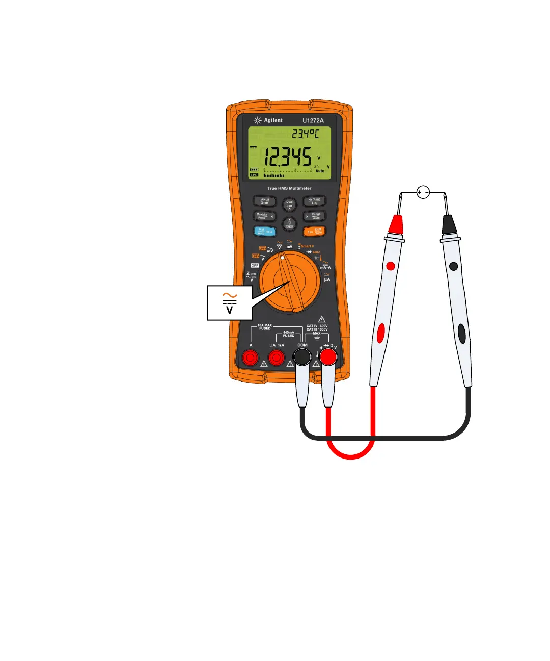 Keysight U1272A - Figure 2-5 Measuring DC Voltage