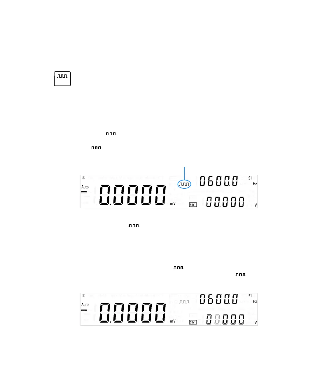 the square- wave annunciator ( ) is flashing to edit the amplitude,