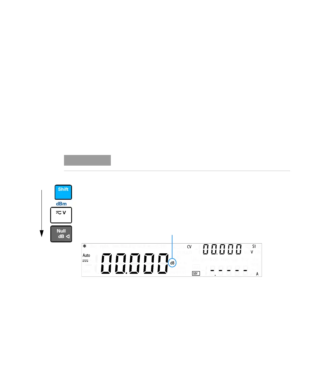 Press Shift > dBm > dB to enable the dB operation. The first displayed