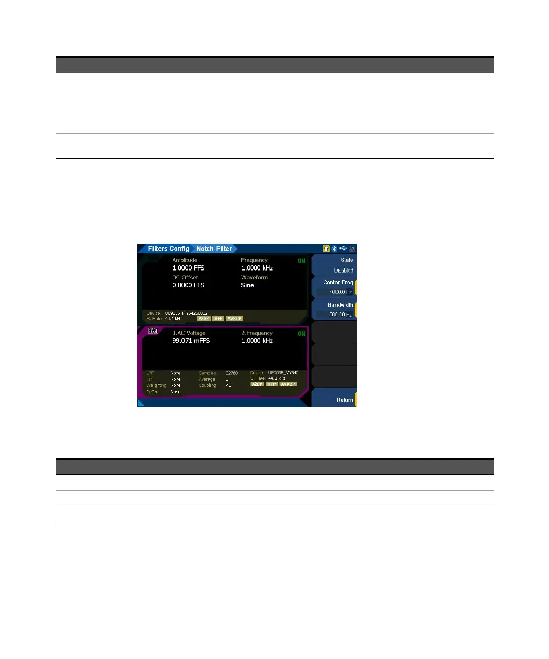 Table 4-26 Bluetooth Analyzer > Filter Config > Notch Filter menu description