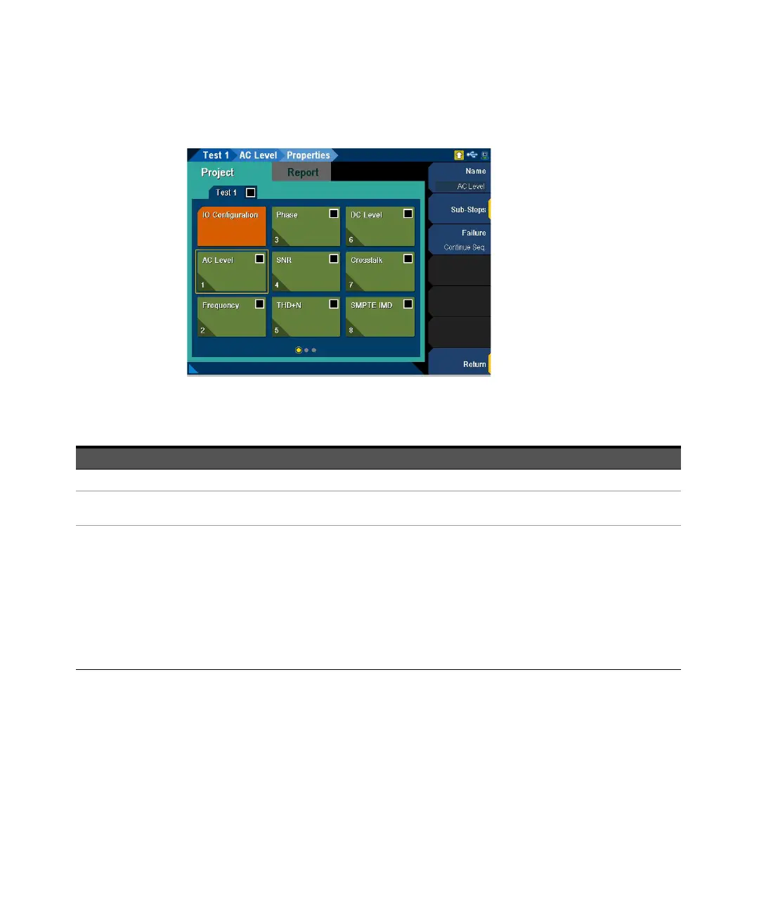Figure 7-16 TSA > Project > Test > AC Level > Properties menu page