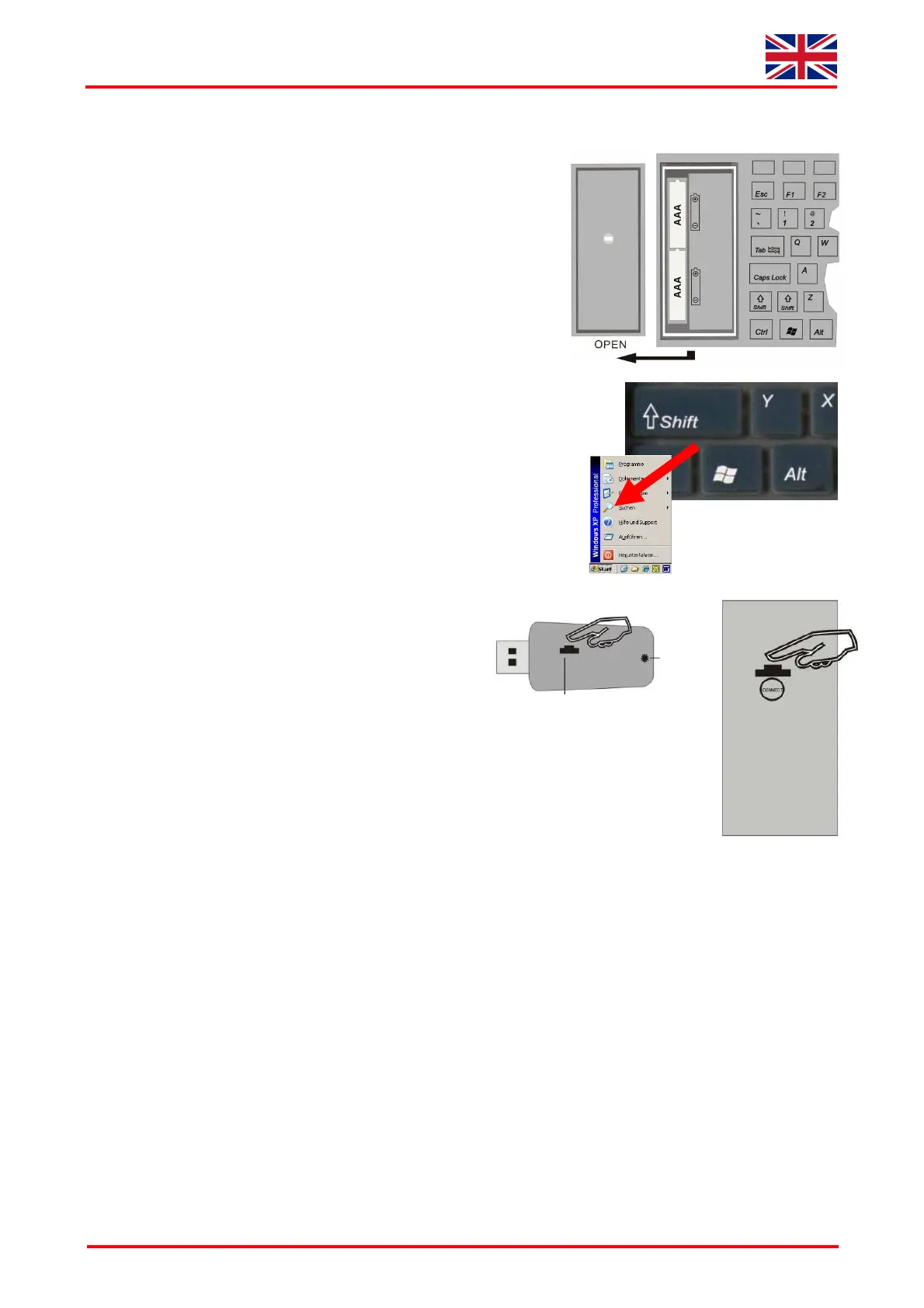 During the procedure of synchronisation the keyboard should be located close to the USB receiver to