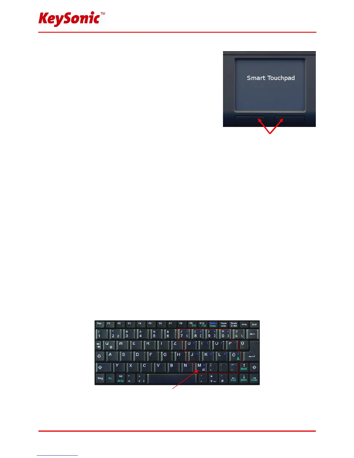 • Bei Notebooks mit bereits integriertem Touchpad und Mausfunktionstasten, müssen Sie bei der Verwendung