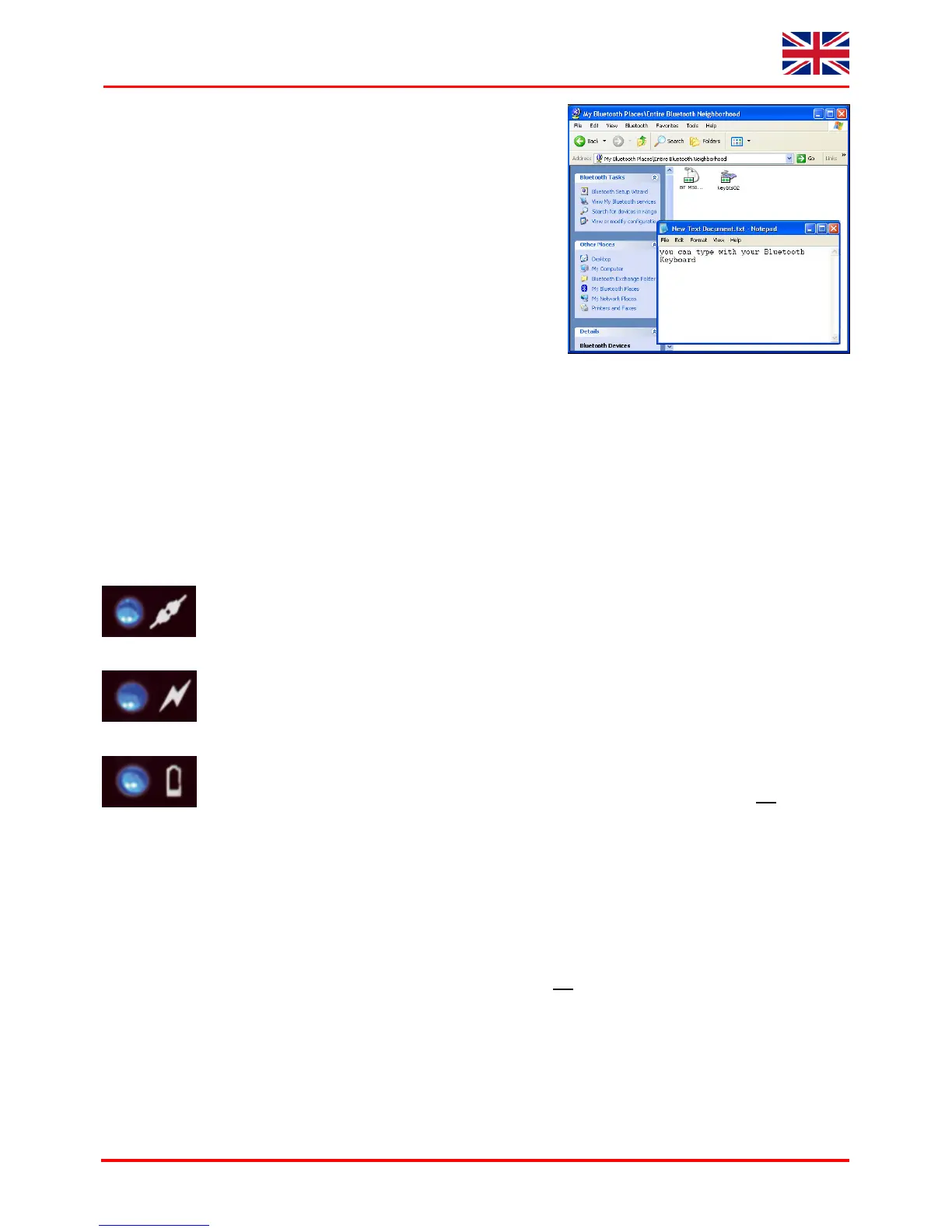 capacity of the batteries. The status LEDs on the front side of your Bluetooth keyboard inform you about the current