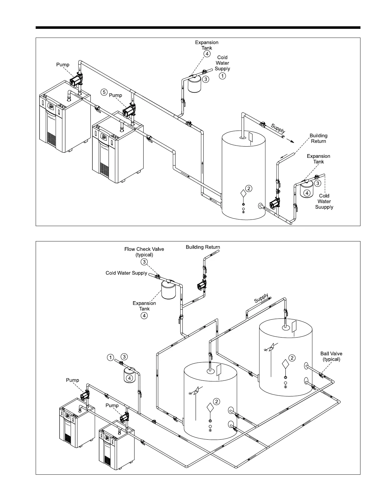 Figure 24. DHW Piping, Two Heaters, Two Vertical Tanks.
