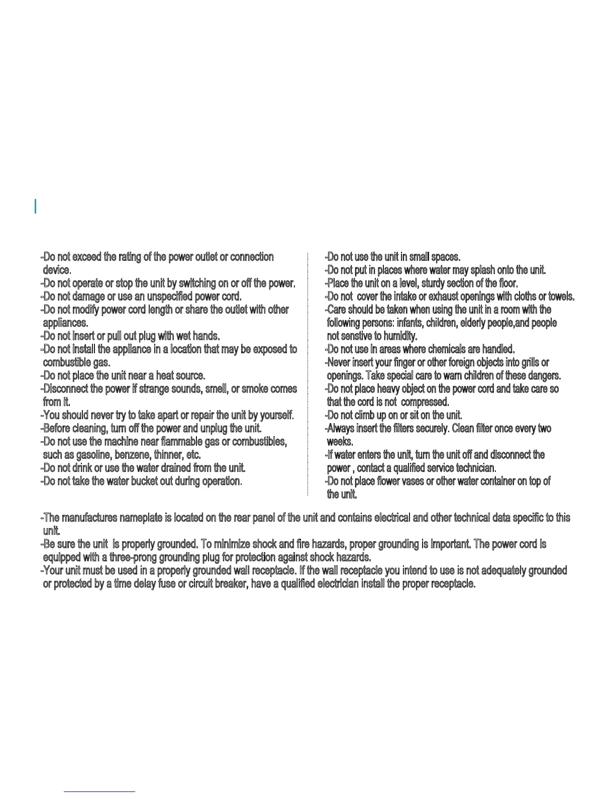 -Do not climb up on or sit on the unit.