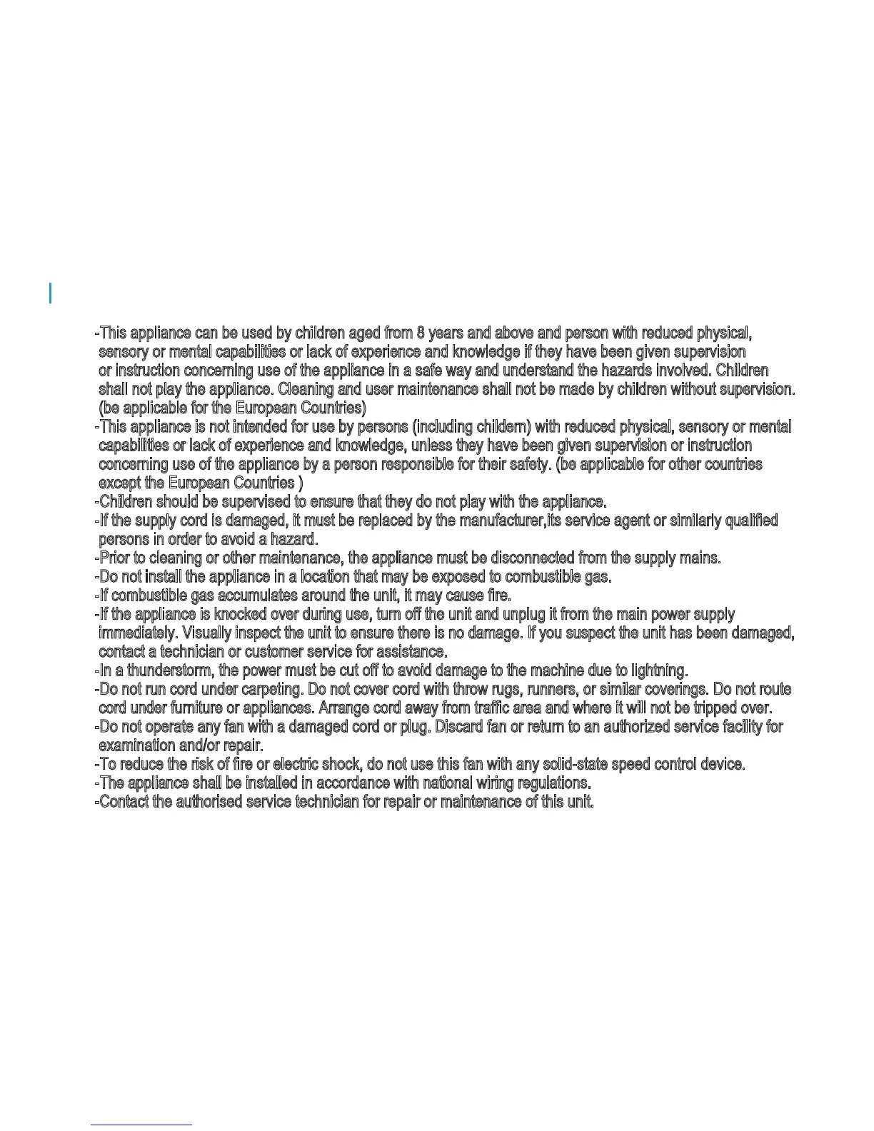-This appliance is not intended for use by persons (including childern) with reduced physical, sensory or mental
