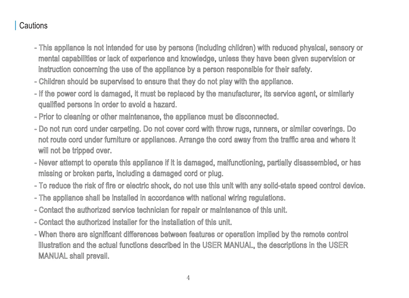 - This appliance is not intended for use by persons (including children) with reduced physical, sensory or