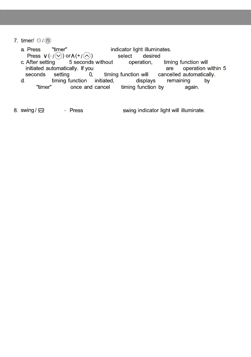 Keystone KSTAP13MFC - Timer and Swing Function Operation