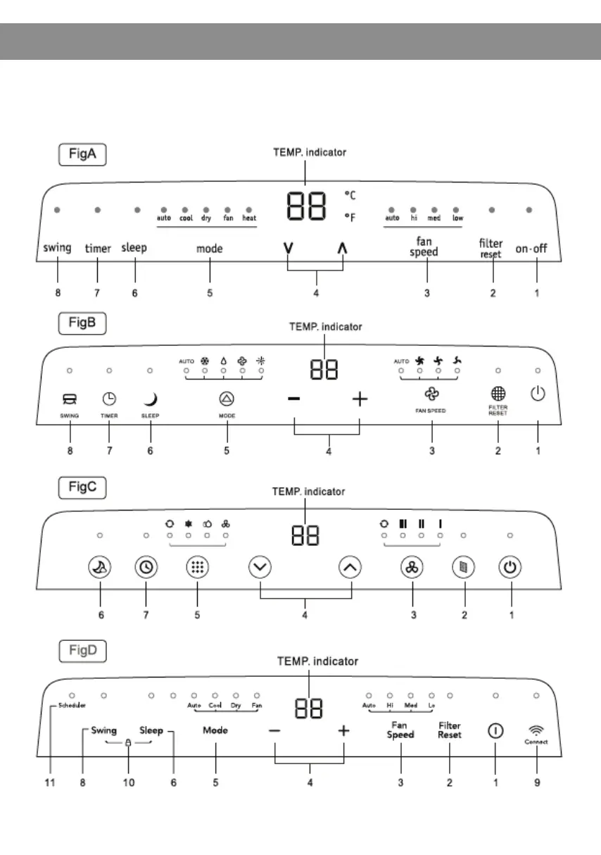There are four kinds of control panels, Fig A, Fig B, Fig C, and Fig D.