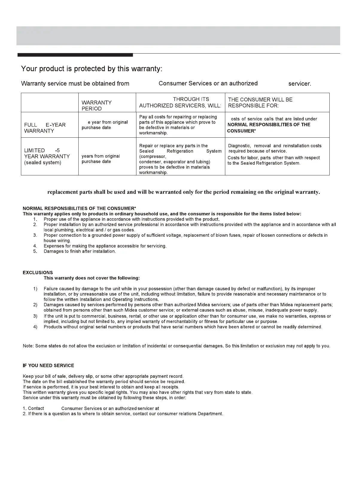 Keystone KSTAT12-2HD - Air Conditioner Warranty; Normal Responsibilities of the Consumer; Exclusions