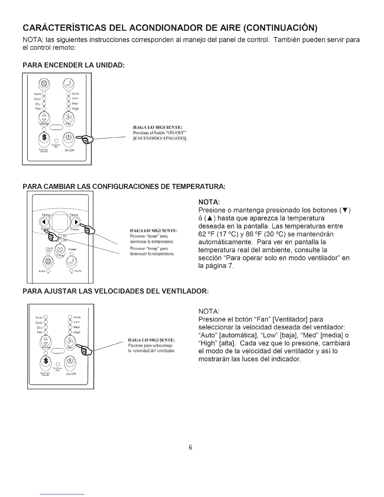 secci6n "Para operar solo en modo ventilador" en