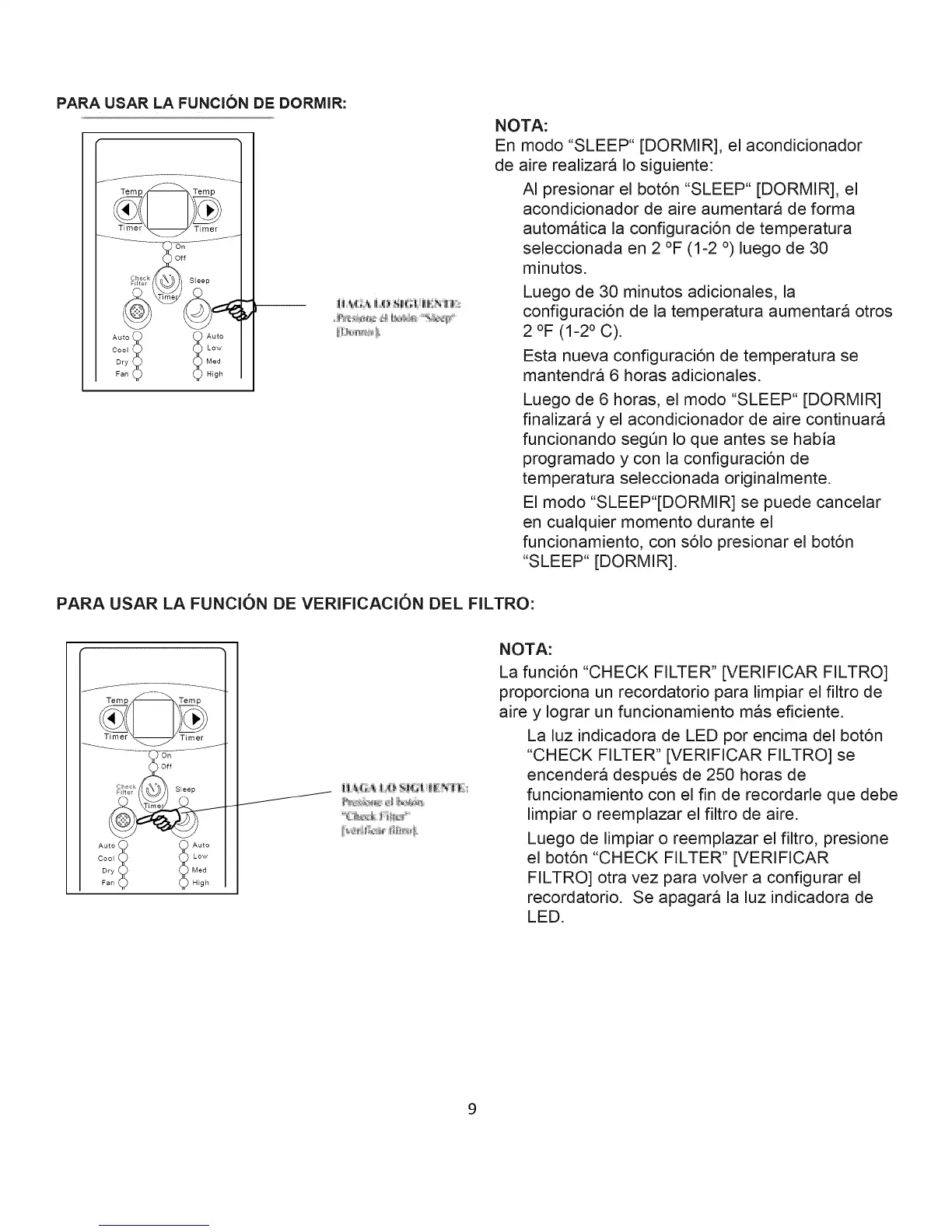 En modo "SLEEP" [DORMIR], el acondicionador
