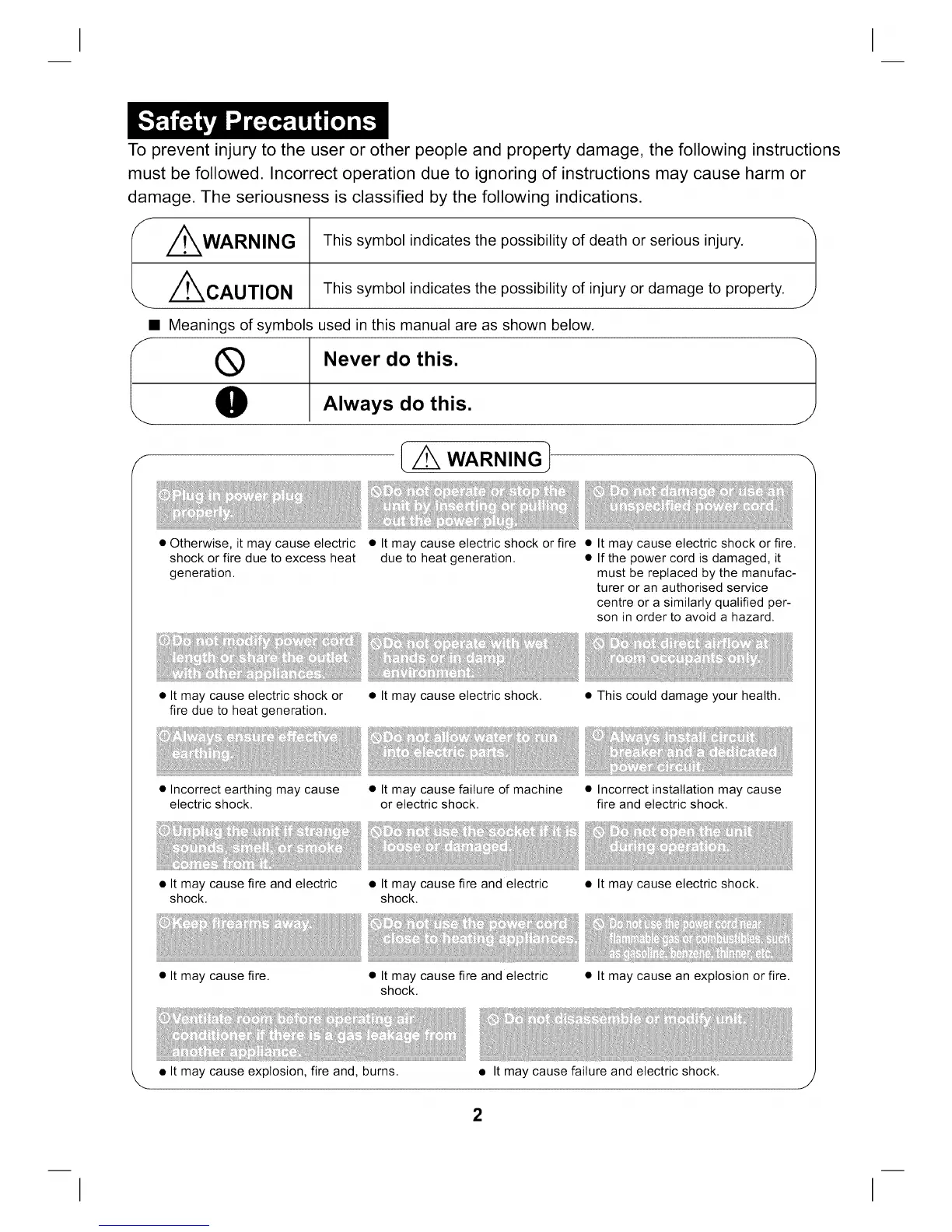 • It may cause electric shock or fire • It may cause electric shock or fire.