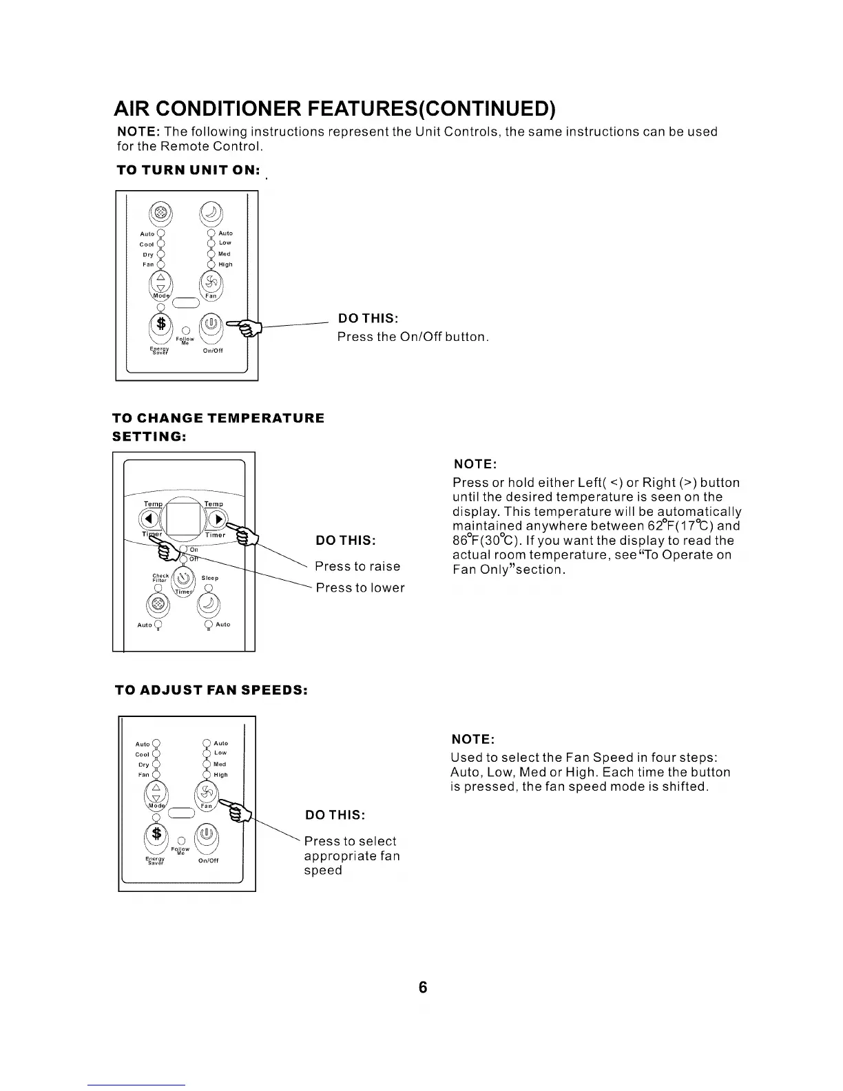 NOTE: The following instructions represent the Unit Controls, the same instructions can be used