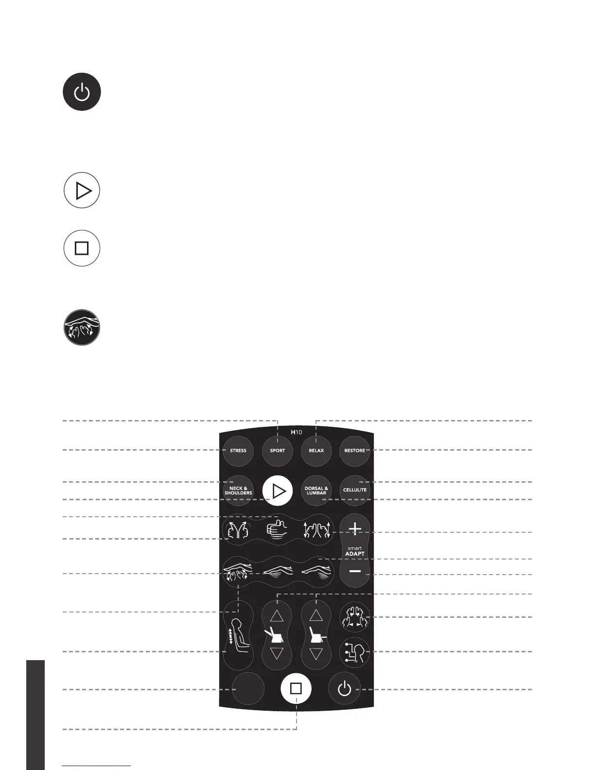 Door op deze toets te drukken worden de massagefuncties van de fauteuil stopgezet. De