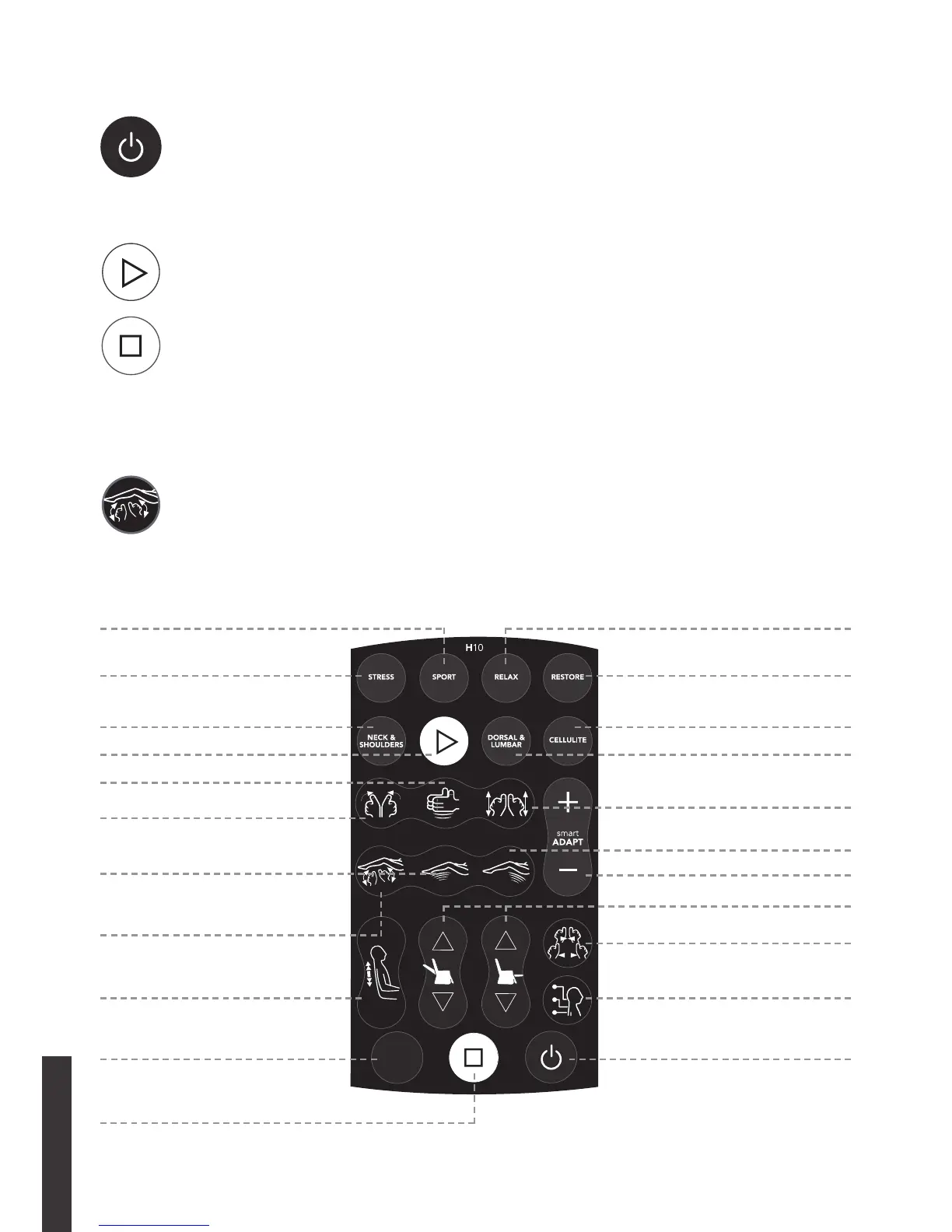 Con questo pulsante si arrestano le funzioni di massaggio della poltrona. I meccanismi
