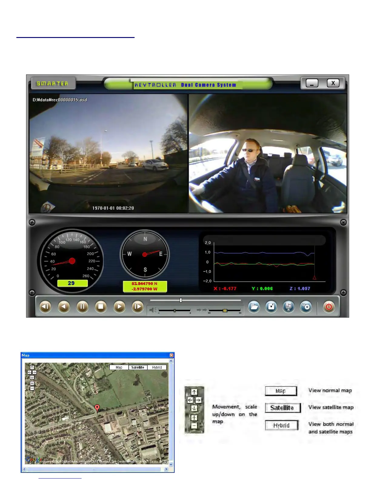 the video is shown. You can choose, Google Map, Satellite (Earth view) or Hybrid (Earth with road names)