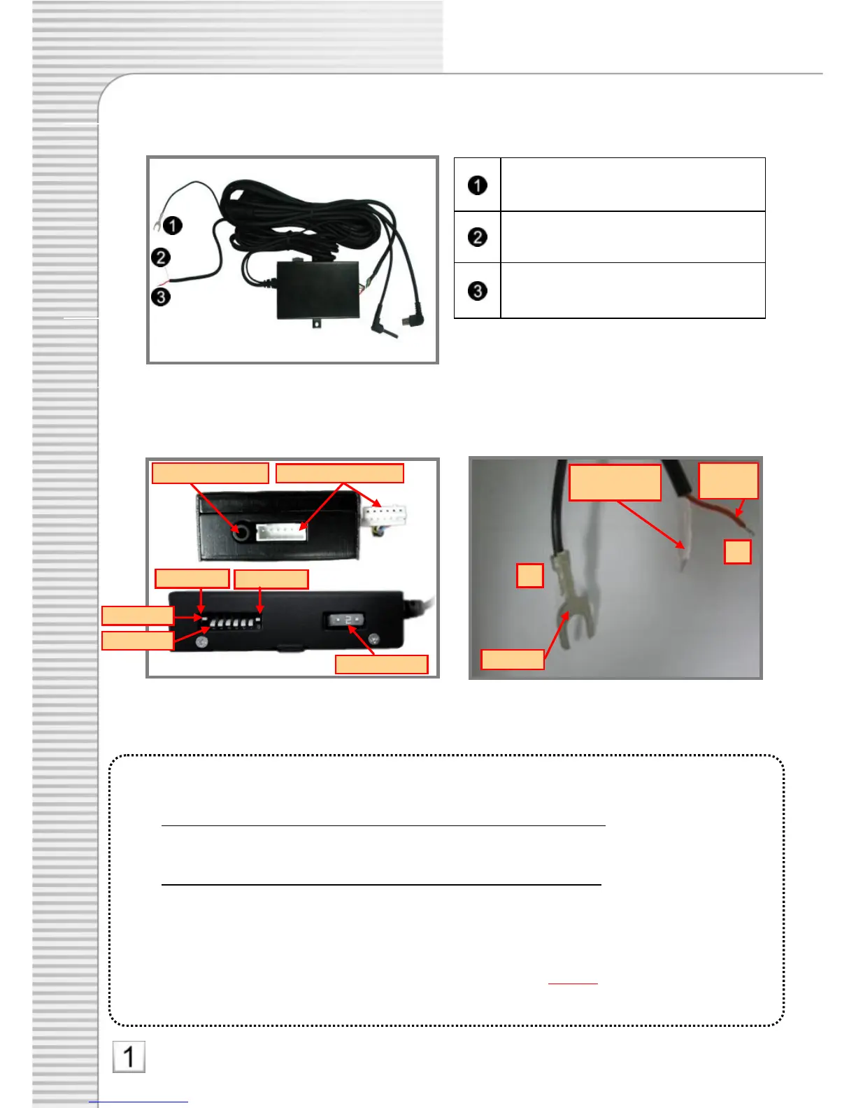 Caution 2) For Continuous Power and IGN signal, connect them via the inside fuse.