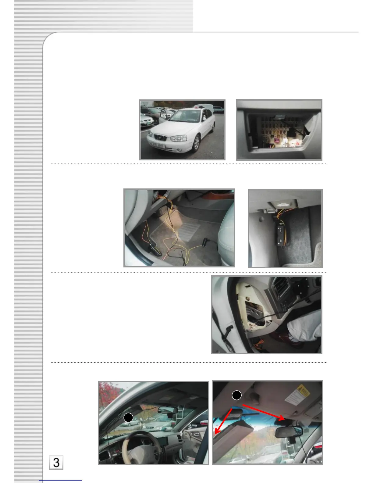 4. After detaching A-pillar (1), insert the cable to the arrow direction (2) near the ceiling.