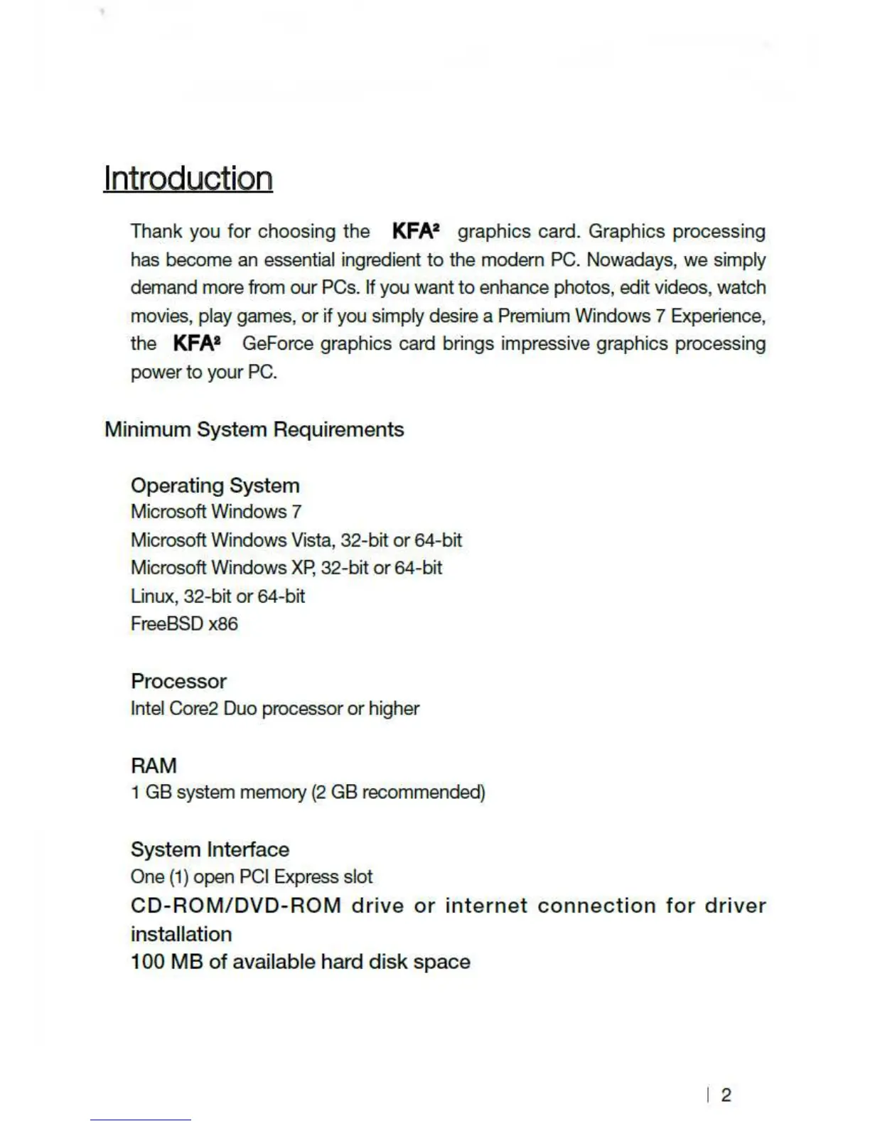 KFA2 GeForce Series - Introduction to GeForce Graphics Card; Minimum System Requirements