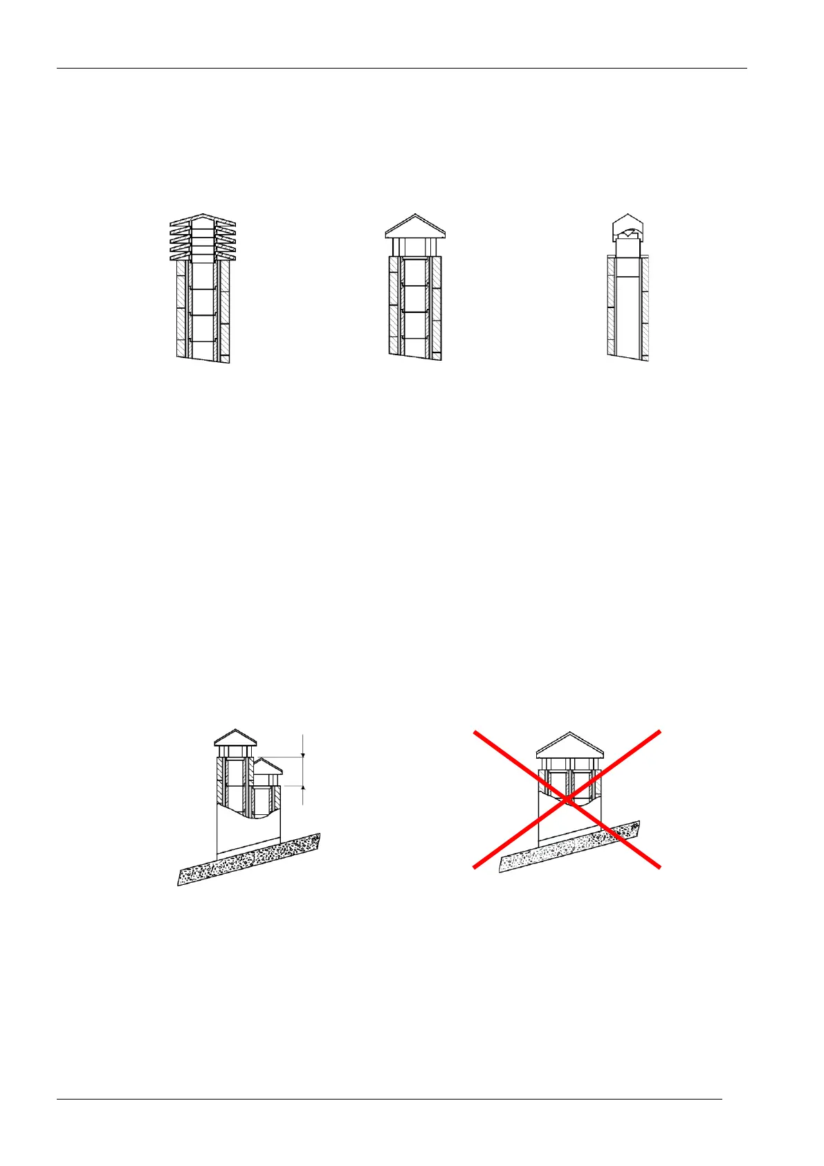 • in case of two adjacent chimneys, tip of one chimney ought to be located at least 50 cm