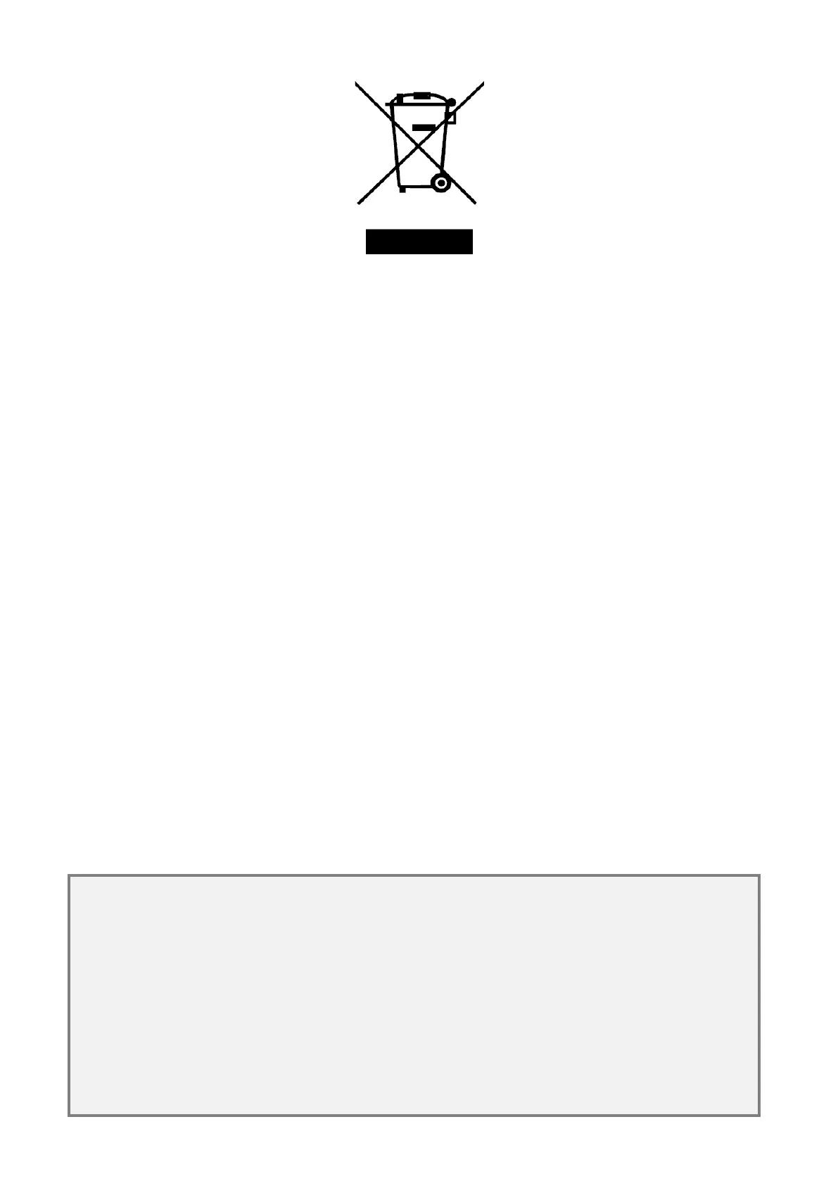 The barred waste bin symbol indicates that the product must be collected separately from other waste at the end of its life.