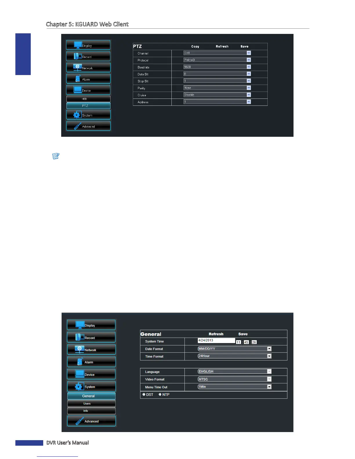 On the System Setup menu, you can modify the me zone and view the language used on the DVR and its signal