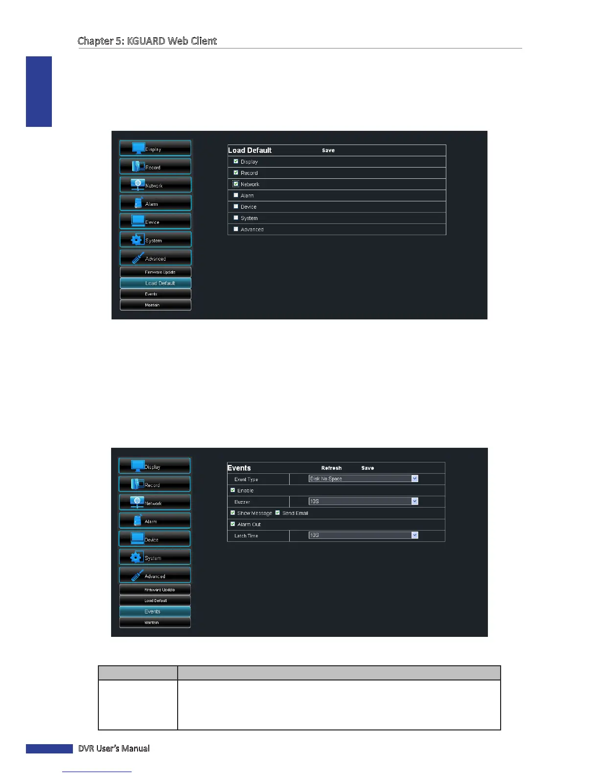 The Events page allows you to dene the type of events for the DVR to issue an alarm.