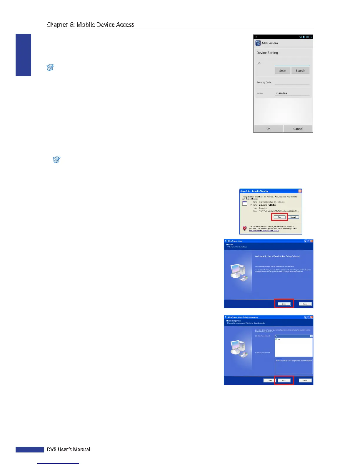 8 Enter the Security Code (password) of connected DVR and change the DVR name