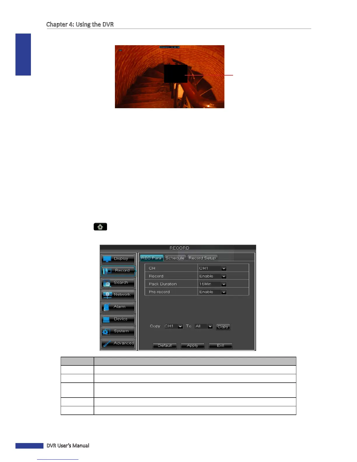 With RECORD menu, you can customize the recording sengs, set the recording schedule and framerate.