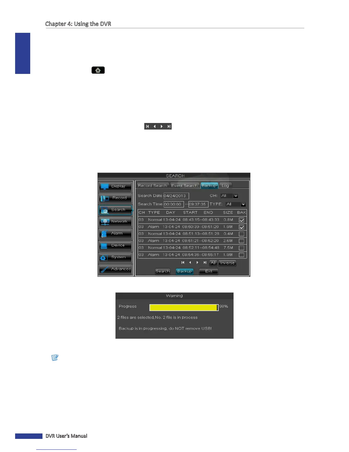 9 Select the BAK boxes of the recordings that you want to backup. A √ icon appears on the check box to indicate that