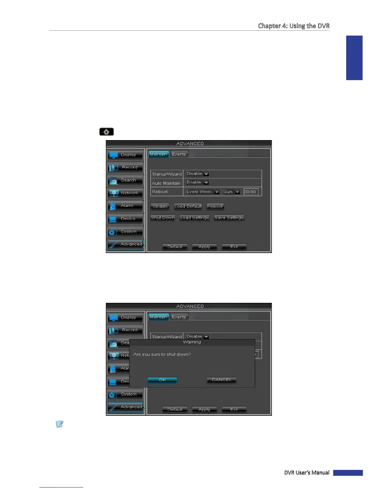 When turning o the DVR, wait for the message “Now you can unplug the power!” to appear on the screen, turn o