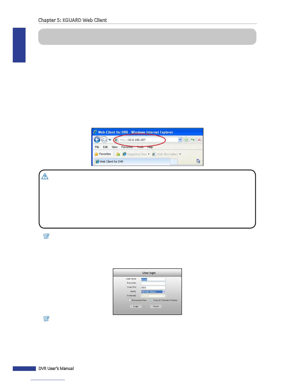 1 Open your computer web browser and enter the DVR IP address or domain name in the URL box.