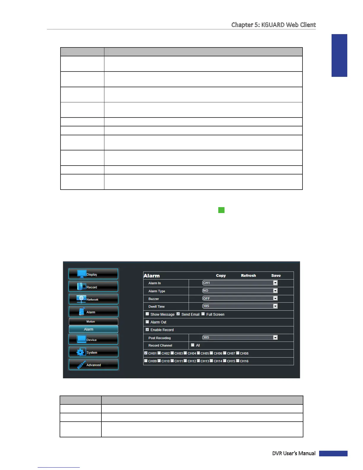 2 On the le panel, click Alarm > Alarm. The Alarm screen appears.