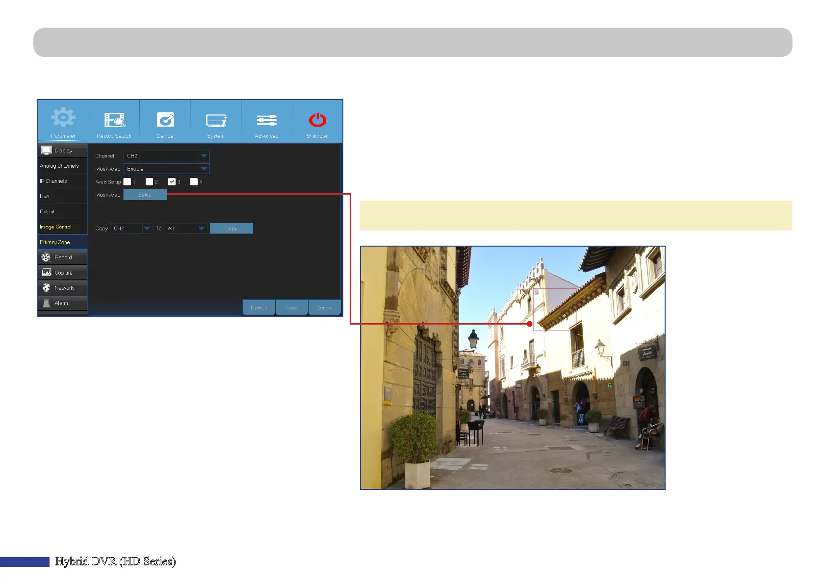 Main Menu > Parameter > Display > Privacy Zone