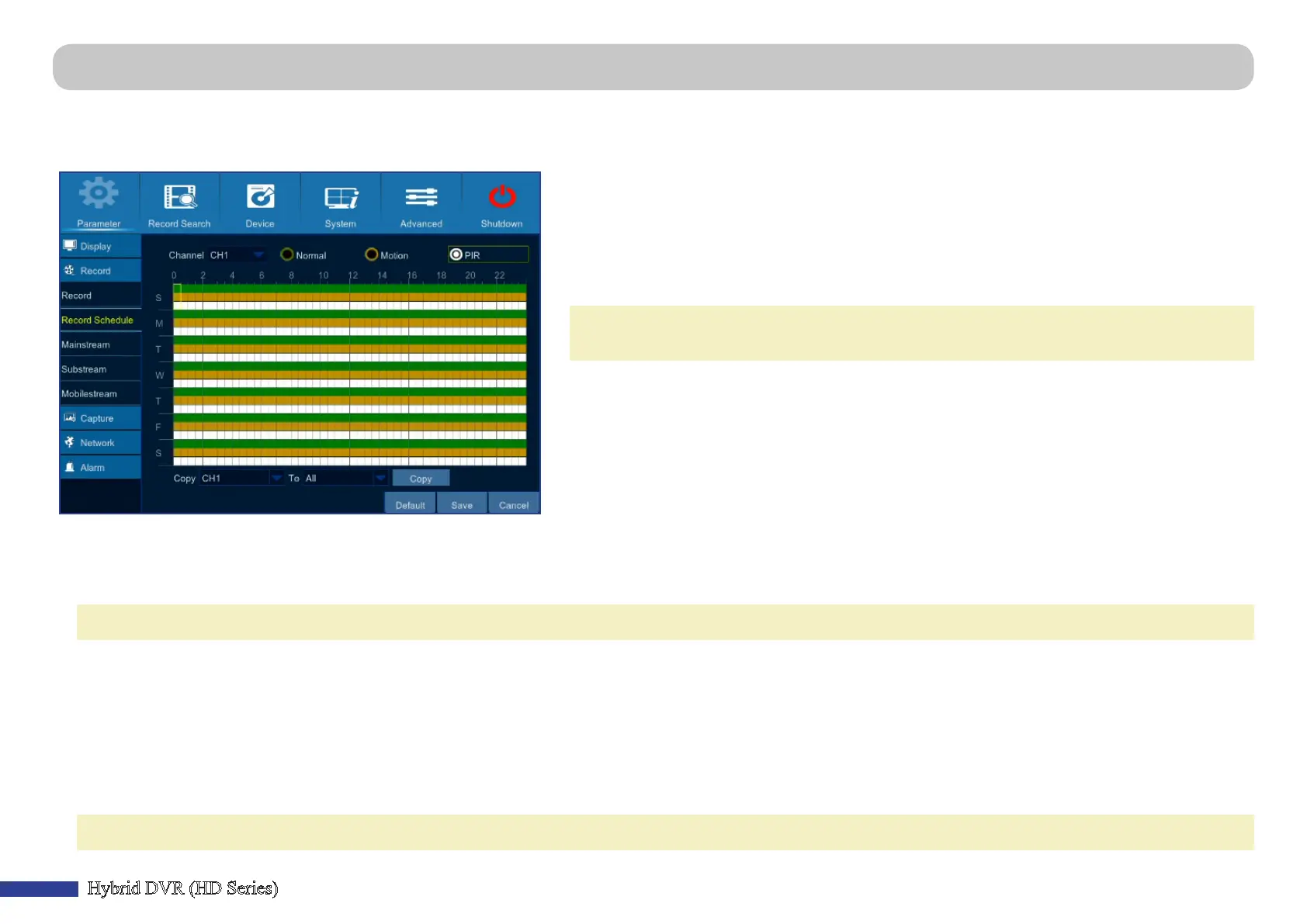drag the cursor to mark the slots. The recording schedule is valid only for one channel. If you want to use the same recording schedule for other channels, use Copy To funcon.