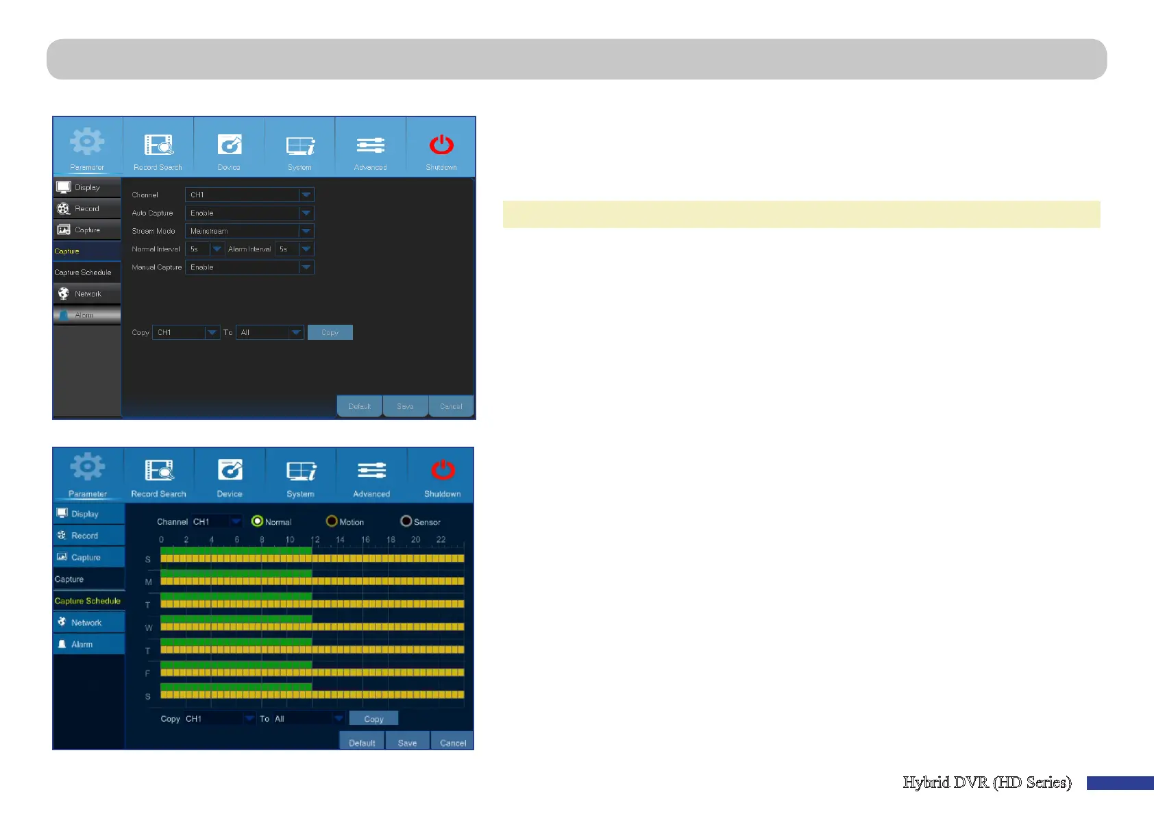 Main Menu > Parameter > Capture > Capture & Capture Schedule