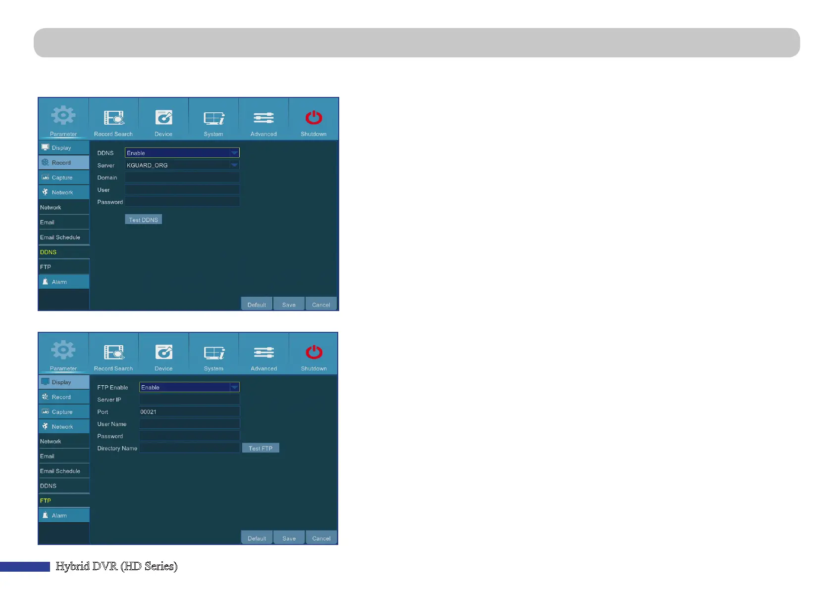 Main Menu > Parameter > Network > DDNS & FTP