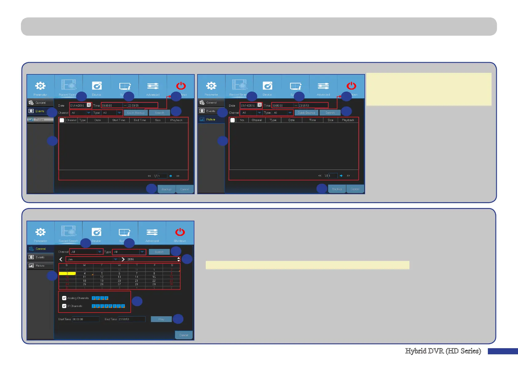 The Playback screen opens. Please see “Main Menu > Record Search > General, Events & Picture