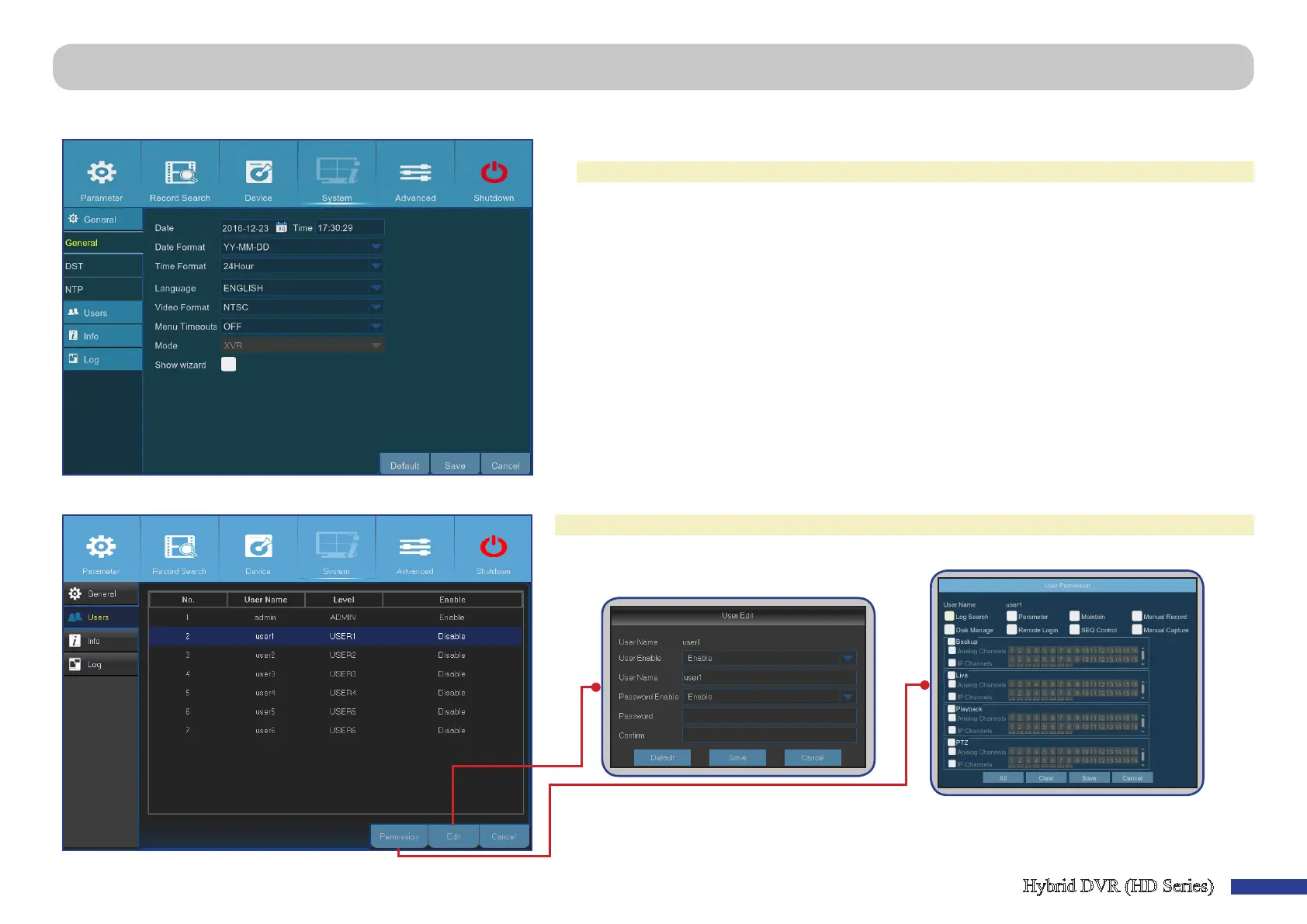 Main Menu > System > General > General & Main Menu > System > Users