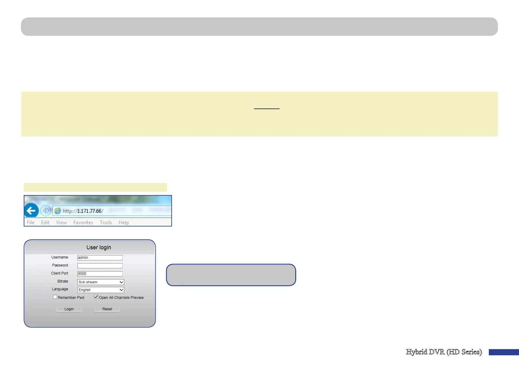 only need to open the web browser on your PC and type in the stac IP address you have set on the DVR. However, if the IP address of the DVR is assigned by a DHCP server (see