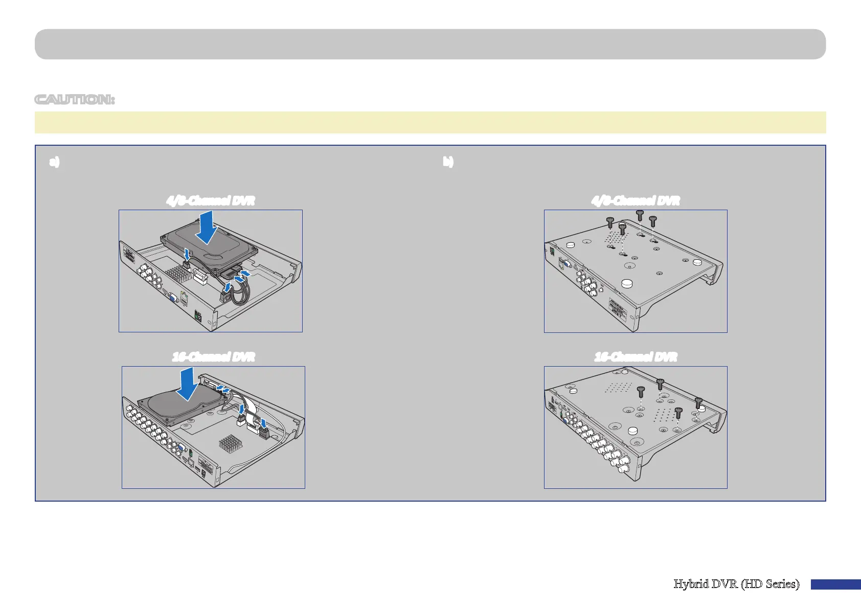 b) Carefully ip the DVR case and secure the HDD to the DVR with the four (4)